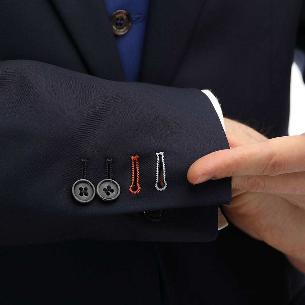 Atentie si la accesoriile din interiorul sacoului. Un sacou SARTO bespoke va avea ranforsari din panza cu fire din par de cal, pentru a oferi o constructie impecabila si o forma conform corpului. In costumul MTM se lucreaza cu adezivi, nu cu panze din par de cal full canvas.