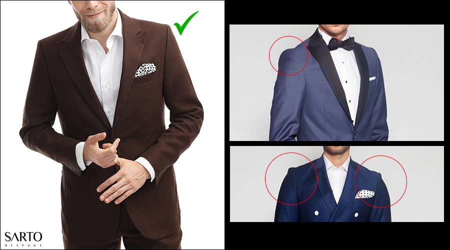 Umerii trebuie dimensionati corect, pe marimea si forma umarului. Un costum MTM va avea cel mai probabil o dimensiune standard a pernitei umarului, conform fabricii in care este lucrat. Un costum SARTO bespoke permite constructia personalizata a pernitei, motiv pentru care acesta va corespunde formei umerilor si nu va fi nici prea ridicat (umeri drepti), nici prea coborat (umeri lasati).