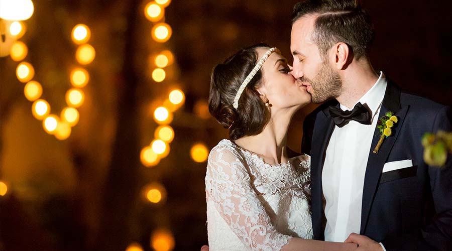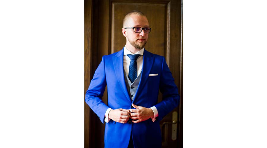 Robert si Cristina sunt cuplul nonconformist care a facut o abatere de la clasica tinuta alb-negru. Robert a optat pentru un costum de un albastru radiant, accesorizat cu o cravata cu imprimeu indraznet, iar pentru un plus de eleganta a ales sa poarte si vesta. Desigur, mirele nostru a stiut cat de importanti sunt si butonii, alegand sa ii integreze in tinuta sa pentru un look cu totul special.